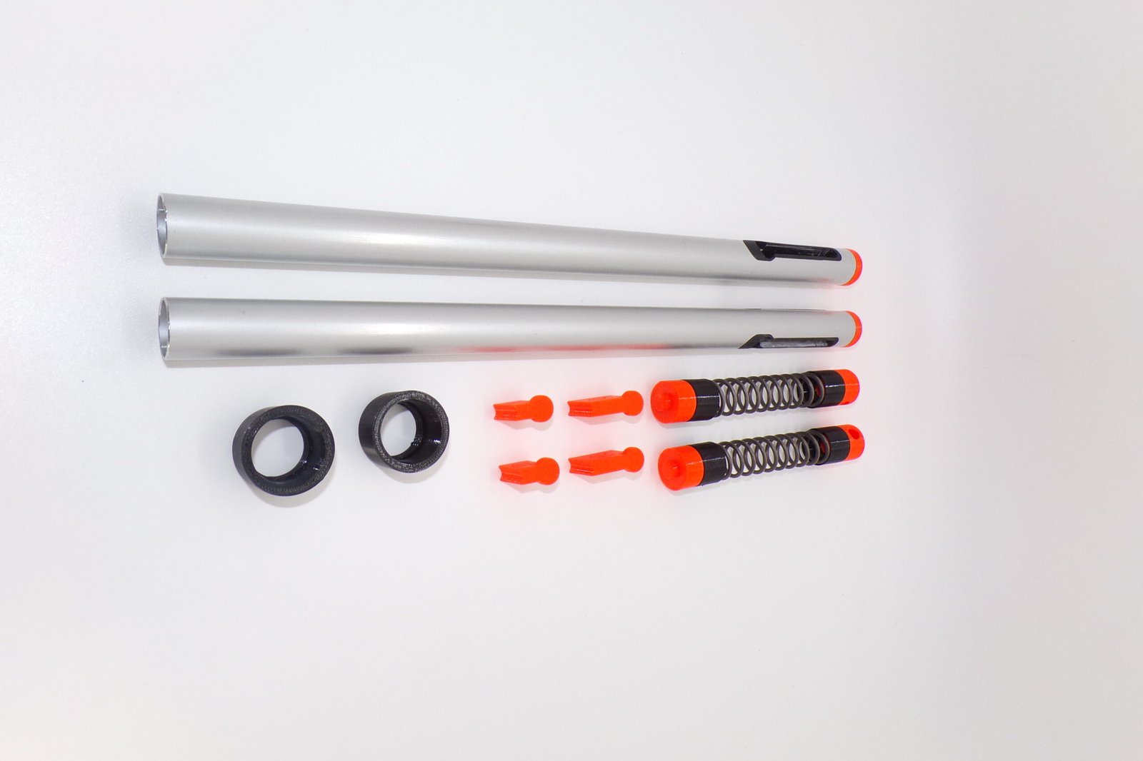 Le kit amortisseur Elo-D inclut tous les éléments nécessaires : pieds, amortisseurs, cales, limiteurs, embouts, clips et manuel d’utilisation. Des composants robustes et certifiés pour un confort fiable au quotidien.
